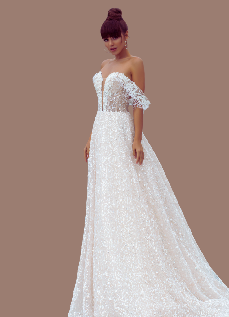 Deep V Sweetheart neckline, full lace line dress.